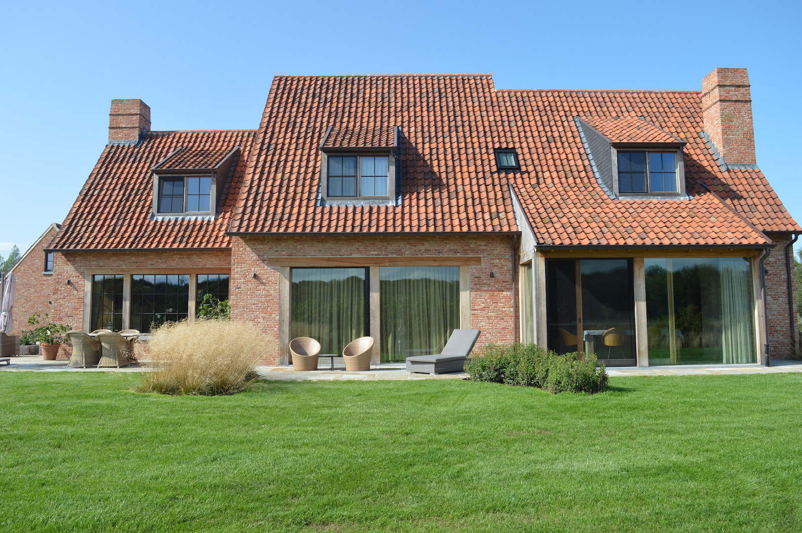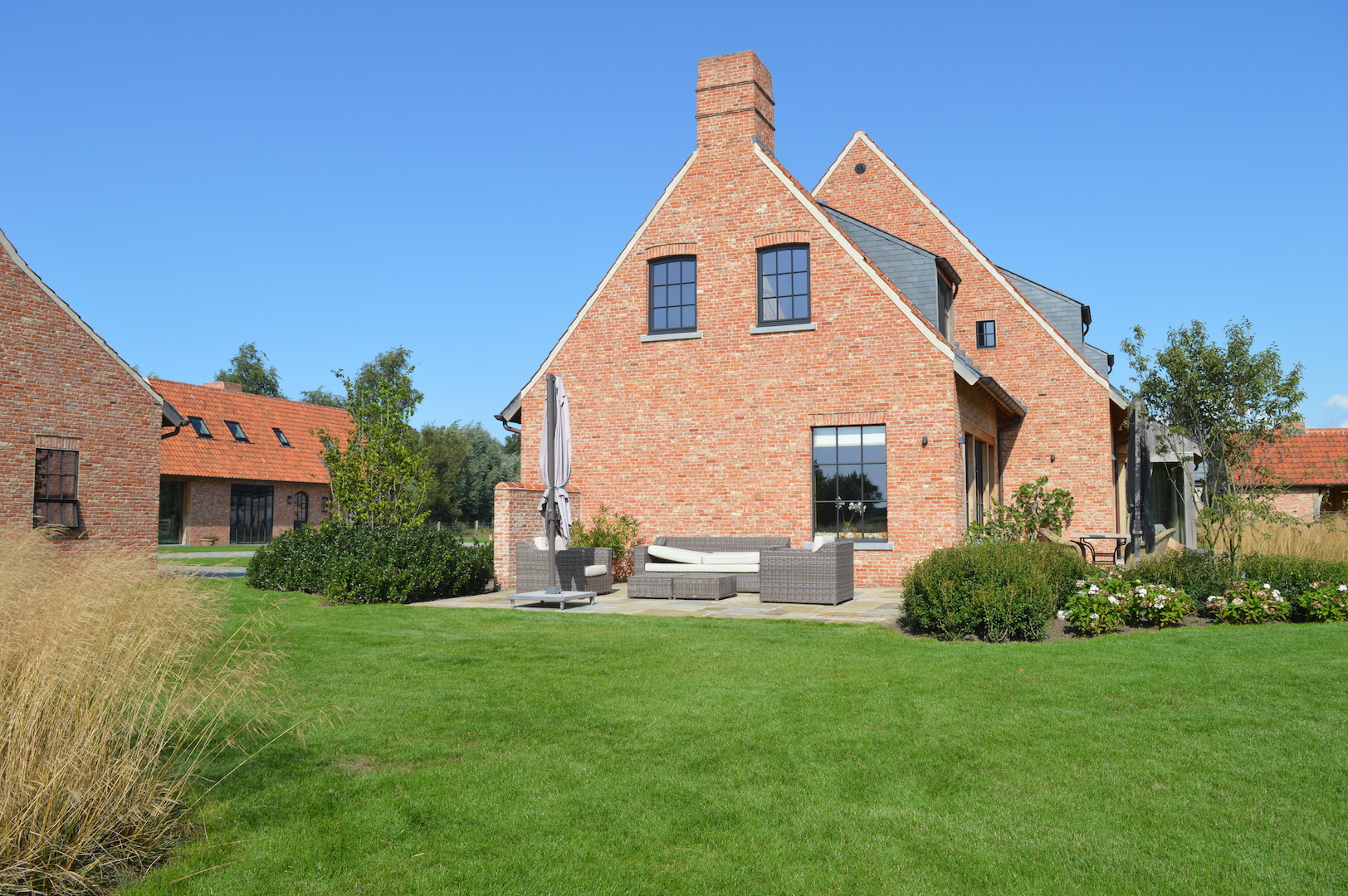 In een prachtige landschappelijke context werd deze prachtige hoeve gebouwd. Met als 'buur' een beschermd natuurdomein vormt dit de evidente link met de omgeving. De grenzen vervagen al heel snel en het landschap wordt tot in de leefruimtes uitgenodigd. De speelse en ongedwongen sfeer biedt letterlijk en figuurlijk rust. Kortom: 360° puur West-Vlaams landschap.