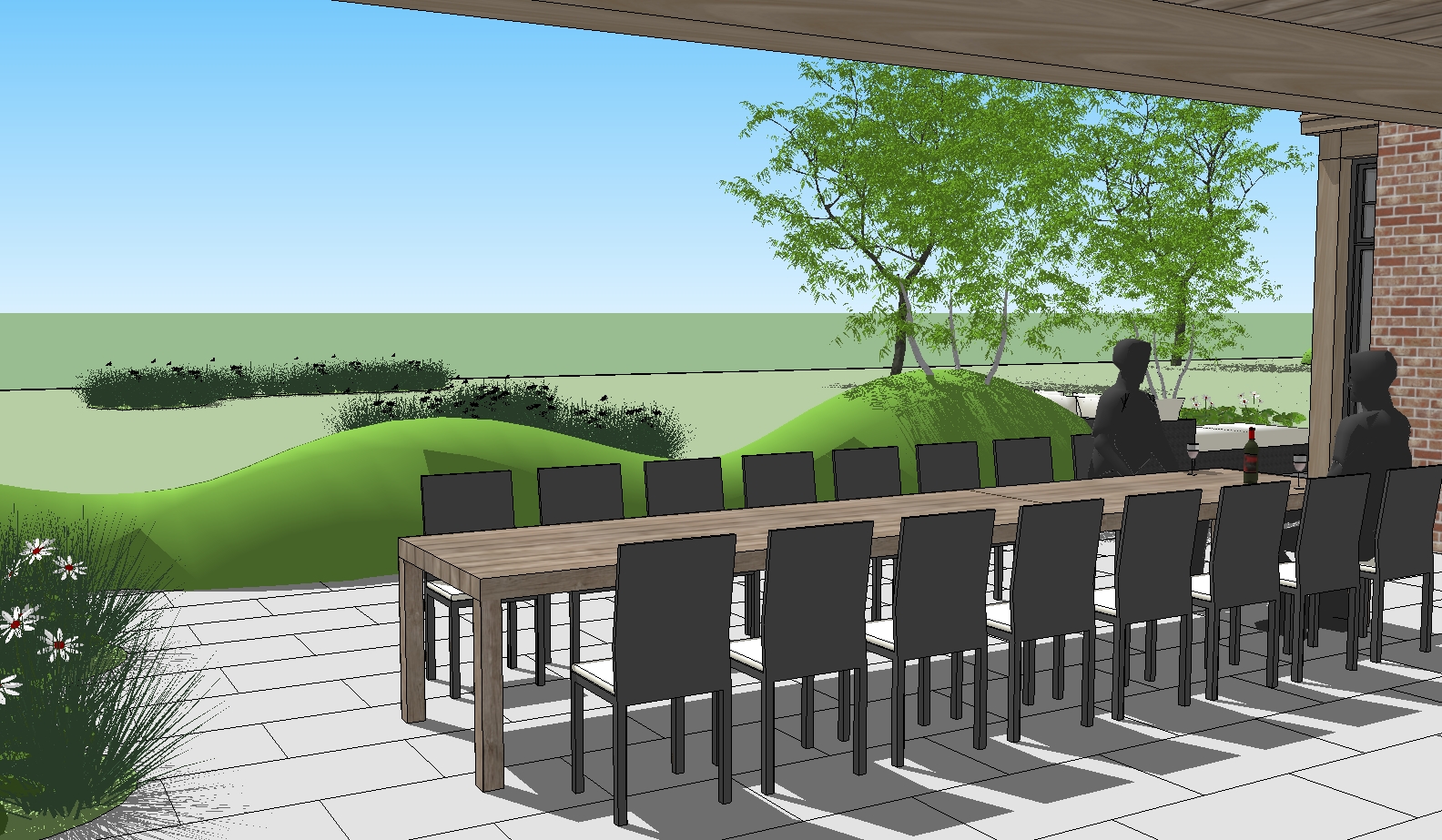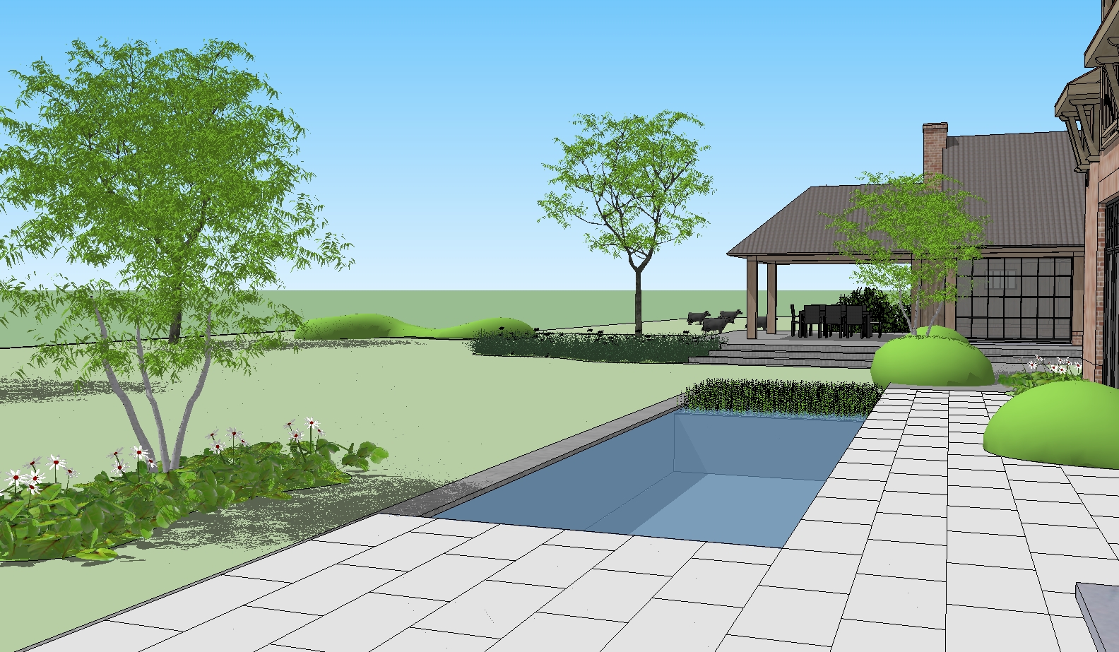 De karaktervolle, authentieke vierkantshoeve biedt een prachtig kader waar de tijd geen vat op heeft. De ritme van het glooiend landschap floreert uitermate in al zijn rust en eenvoud. De langgerekte vergezichten en vista's bieden een prachtig kader met uiteindelijk de aanblik op de Kemmelberg... Het hoogteverschil biedt letterlijk een extra dimensie waarbij de tuin letterlijk overvloeit in het landschap. Door het integreren van de HaHa vervagen de grenzen letterlijk.